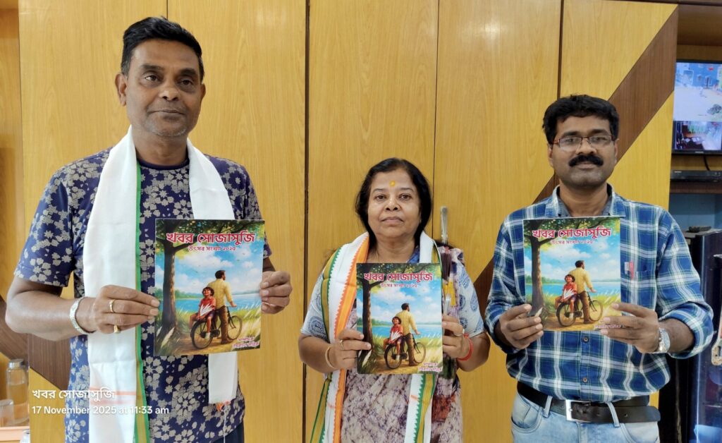 আজ প্রকাশিত হল খবর সোজাসুজি পত্রিকার শারদীয় উৎসব সংখ্যা, আনুষ্ঠানিক প্রকাশ করলেন ধনেখালির বিধায়ক অসীমা পাত্র, সঙ্গে ছিলেন ধনেখালি পঞ্চায়েত সমিতির সহ সভাপতি সৌমেন ঘোষ এবং খবর সোজাসুজি পত্রিকার সম্পাদক ইসরাইল মল্লিক।