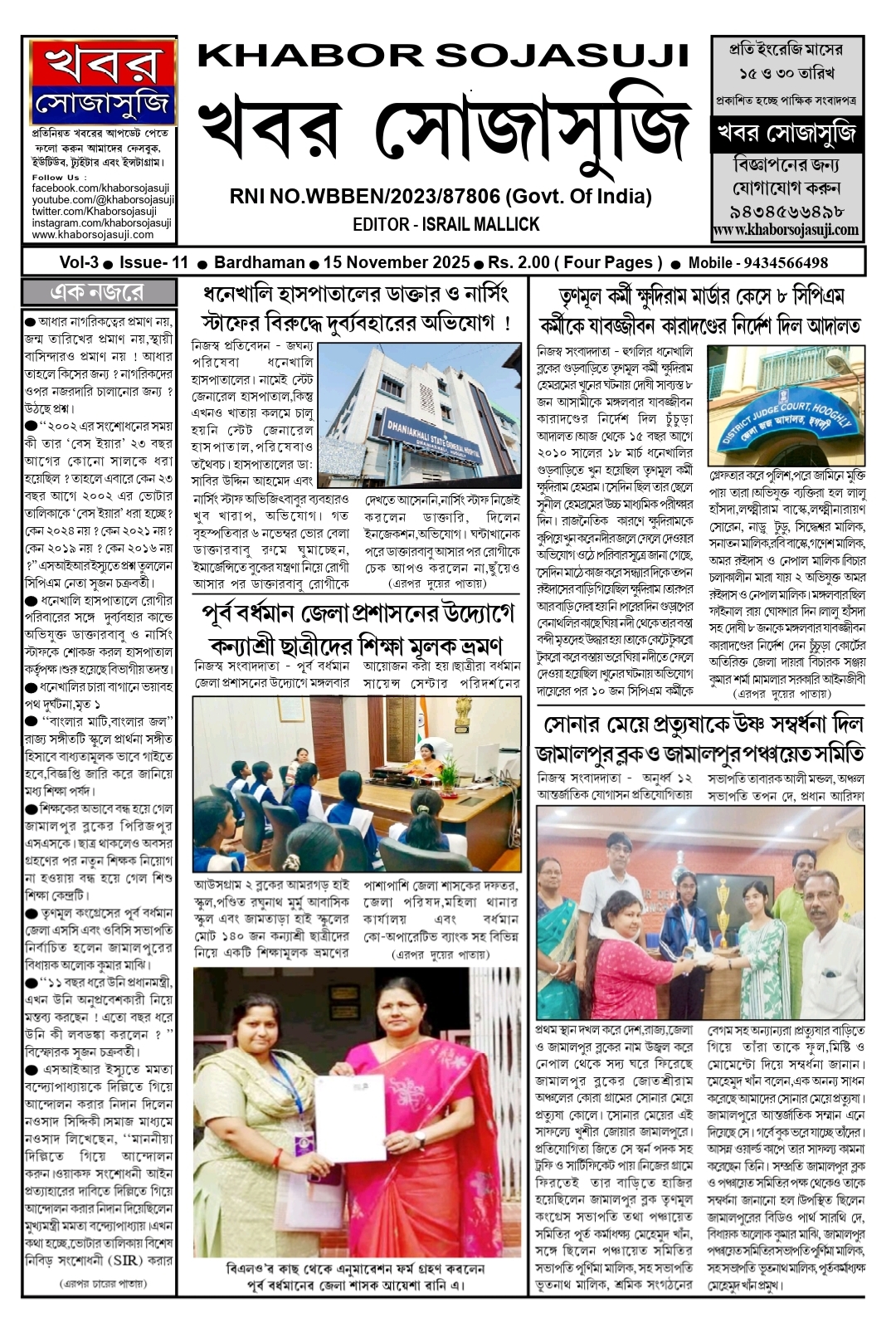 KHABOR SOJASUJI (VOL-3, ISSUE -11, NOVEMBER 15 , 2025)