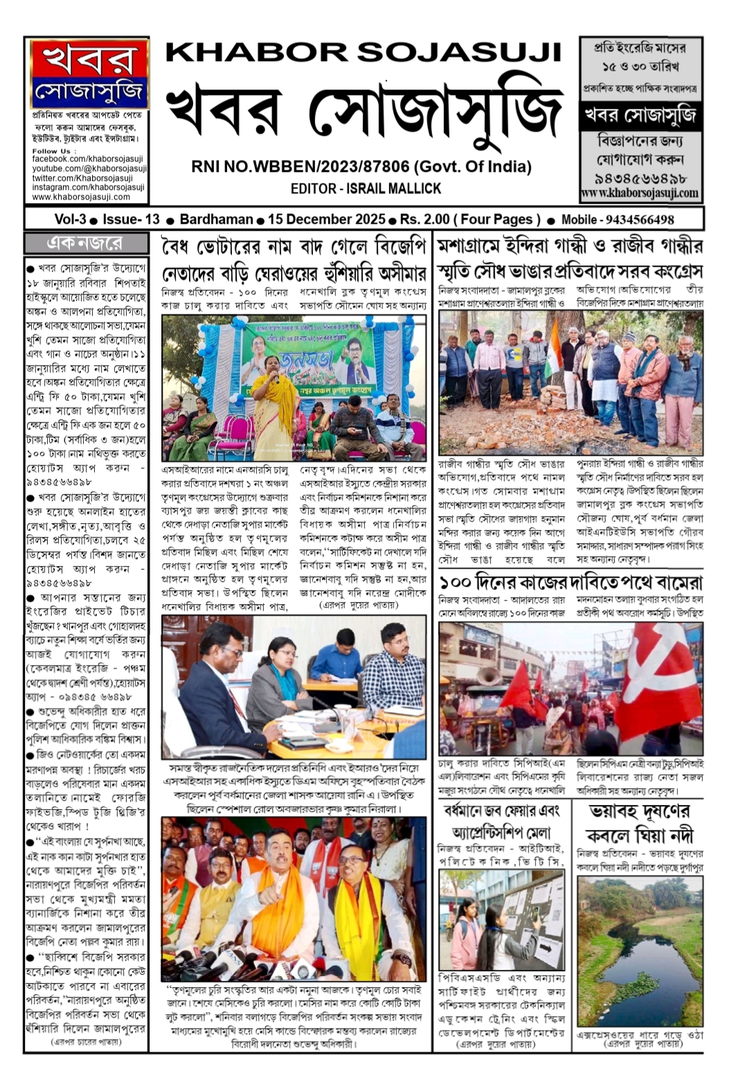 KHABOR SOJASUJI (VOL-3, ISSUE -13, DECEMBER 15 , 2025)